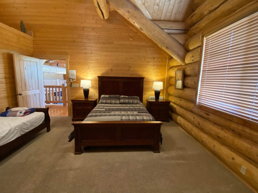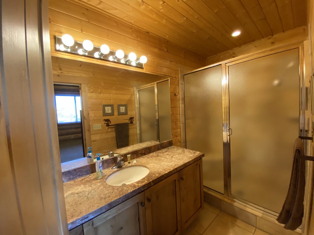 The upstairs level of the Lodge is accessed by a beautiful wooden staircase or by an elevator. The upstairs has 5 beautiful suites, each wonderfully decorated. All of the upstairs suites have their own bathrooms.